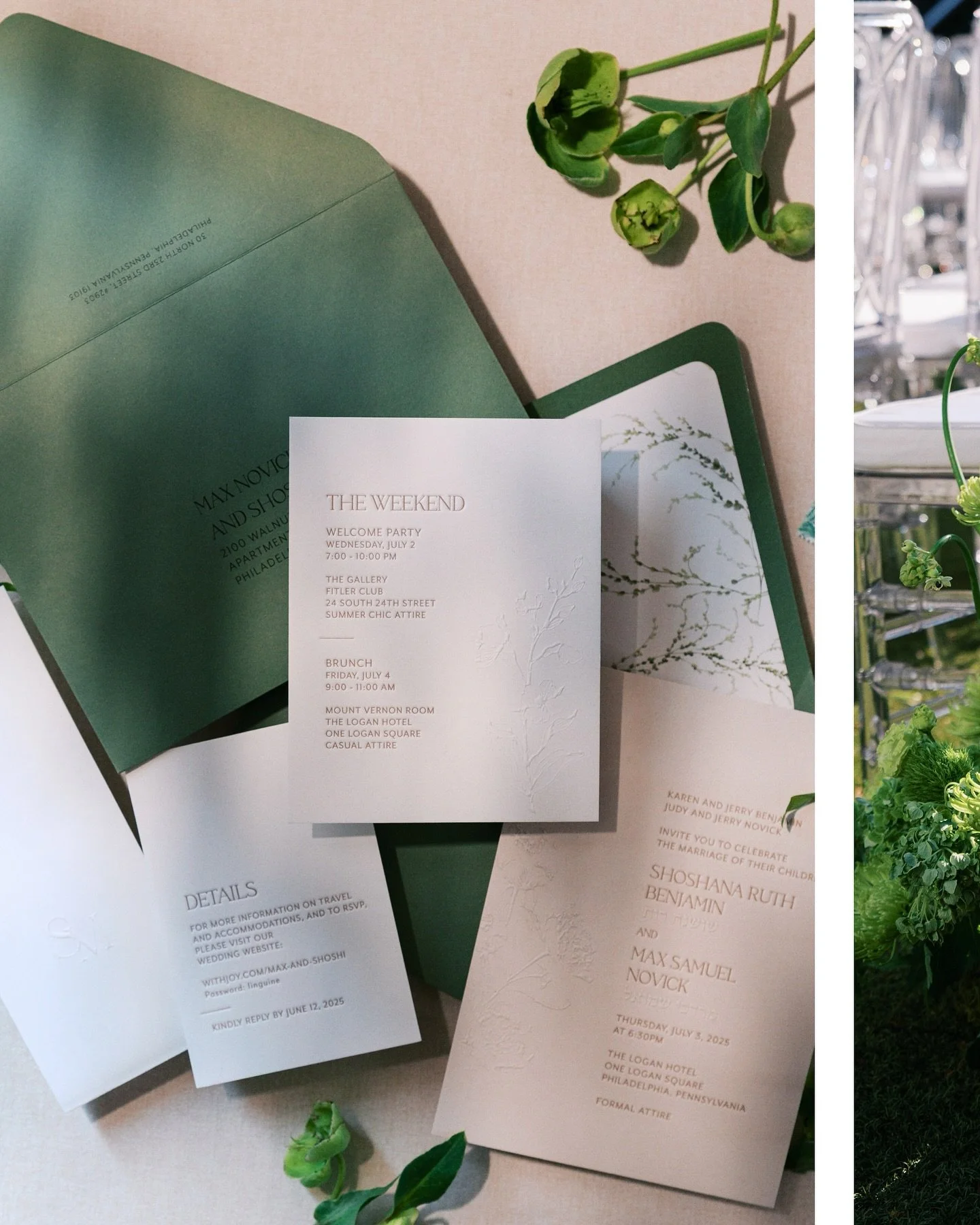 Our Collection path offers greater flexibility across a range of price points. Most designs can be tailored to suit your budget, with interchangeable elements and a la carte add-ons available. You will work one-on-one with our Senior Designer, Emily. Collection clients typically invest between $3,500–$8,000 for their complete suite of paper goods.